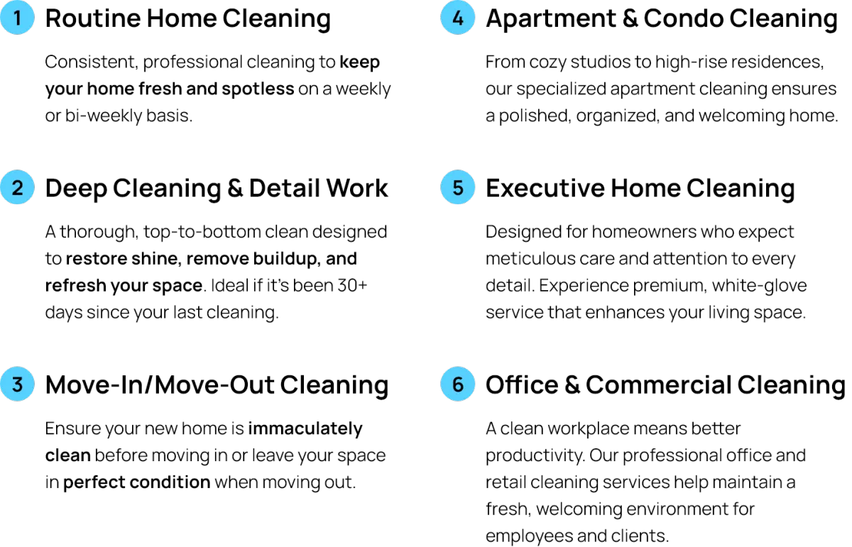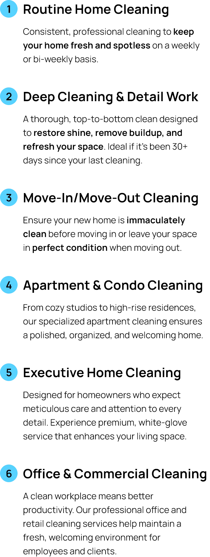 Pricing depends on your home’s size and the type of cleaning needed. But don’t worry, we provide upfront, transparent pricing with no hidden fees! Get a free quote here.